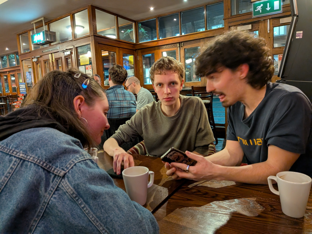 Me and a few friends have started to enjoy a new movement in hanging out culture. We call it tea and coffee at spoons. It’s because, get this, we go to a wetherspoon and get a tea and coffee refill. If you get there before 11, they probably still have the machine on so you can get like 5 coffees in for £1.30. It’s stealing. Best part is, too, we get to be warm and chill and talk about music.